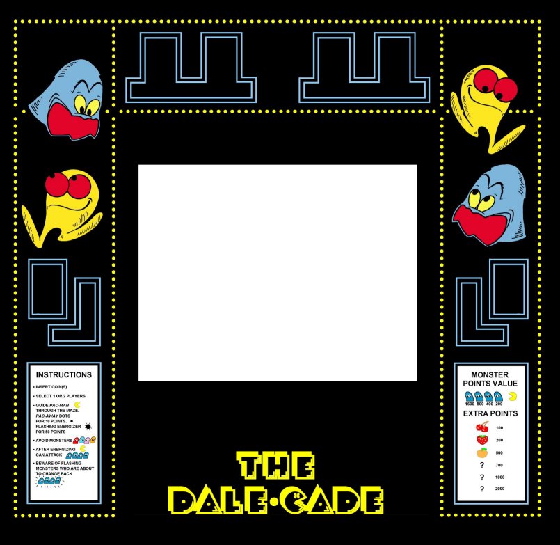monitor casing up while letting the screen show through, and a PacMan-themed